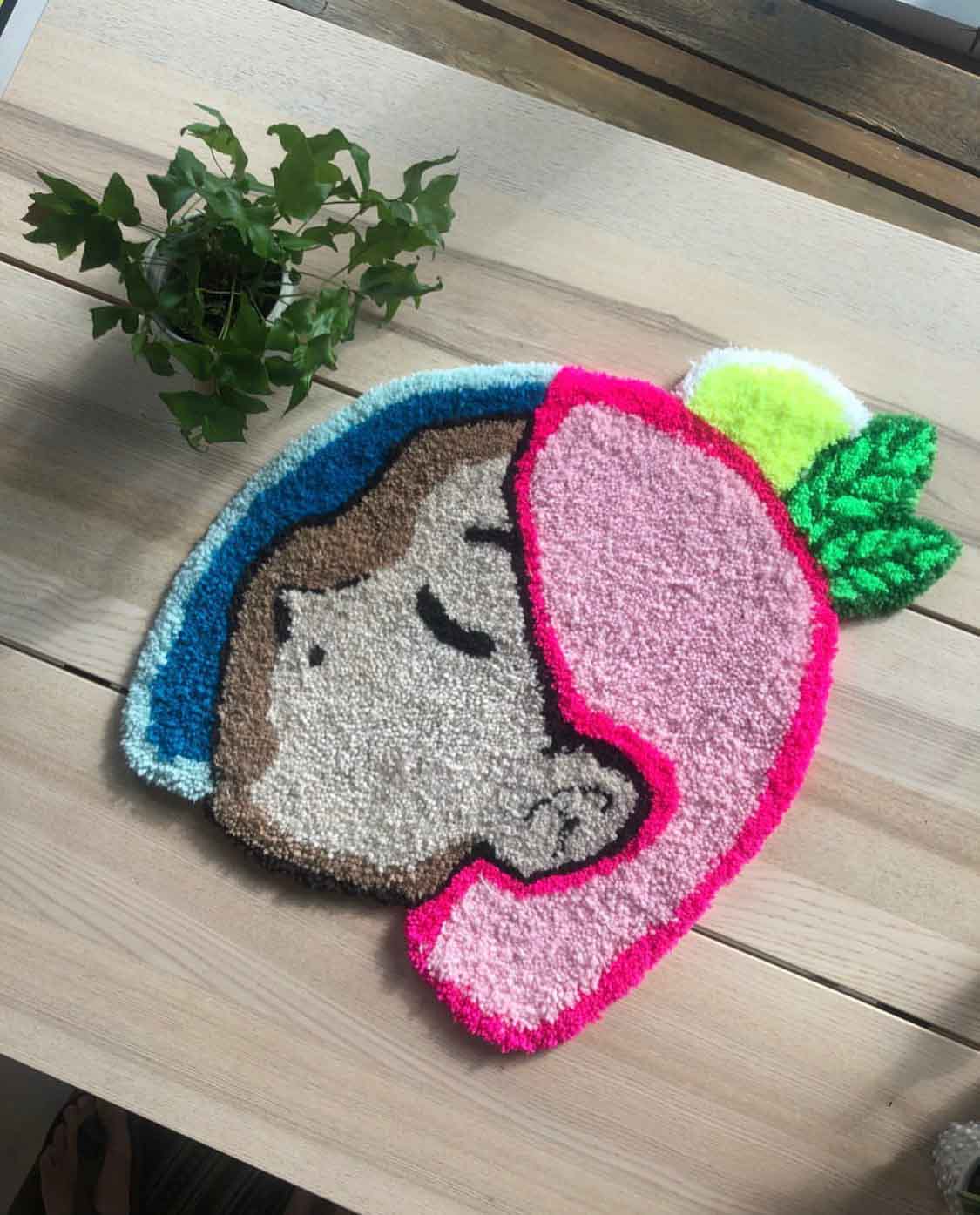 Jeg er fuldtidskunster til dagligt og elsker at kaste mig ud i nye projekter. Tufting er som at male, bare med garn og stof, og jeg føler, der er uendelige projekter, jeg kan kaste mig over! Jeg kan ikke altid selv følge med i mit eget hoved, men jeg elsker det. Jeg vil hellere have en masse idéer end slet ingen.