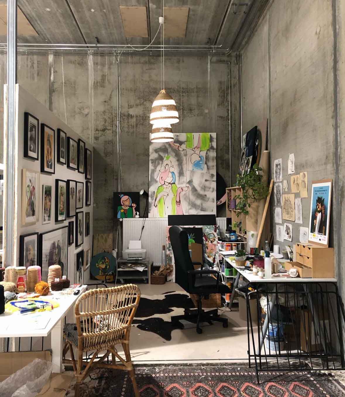Christina arbejder med mixed media og maler både med akvarelfarver, akryl, oliemaling og vægmalerier - og hun er en af de vildeste kunstnere, vi har set.