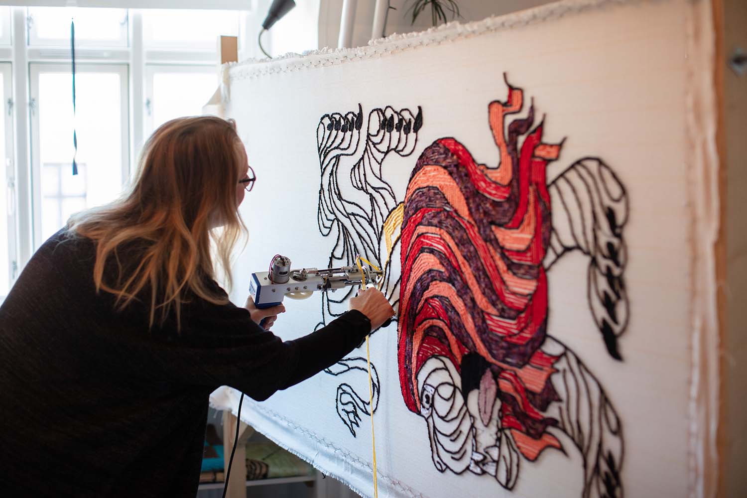 Vi har besøgt Stinne fra Islands Brygge i København, der altid har arbejdet kreativt men aldrig før har været så tæt forbundet med et håndværk som med tuftingen.