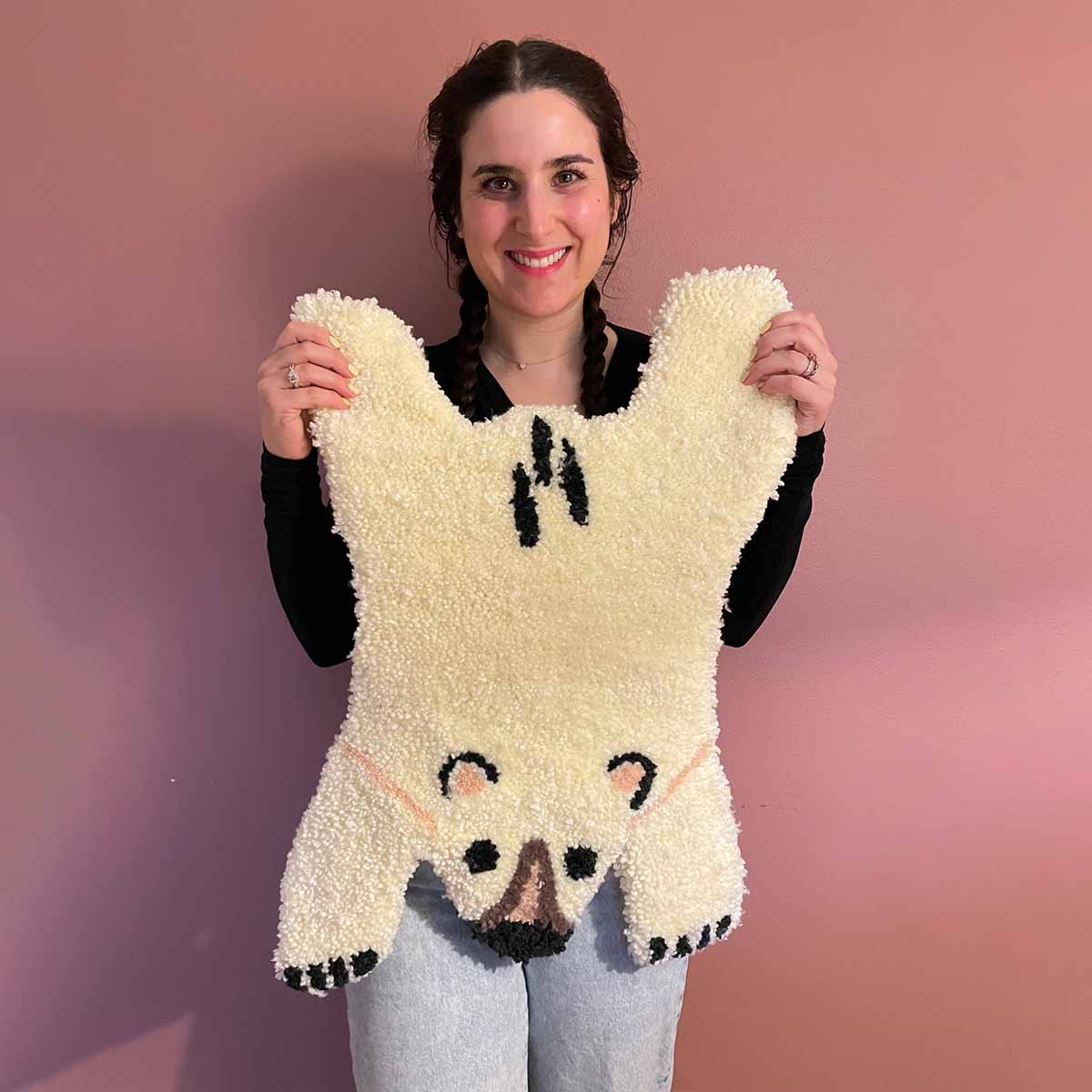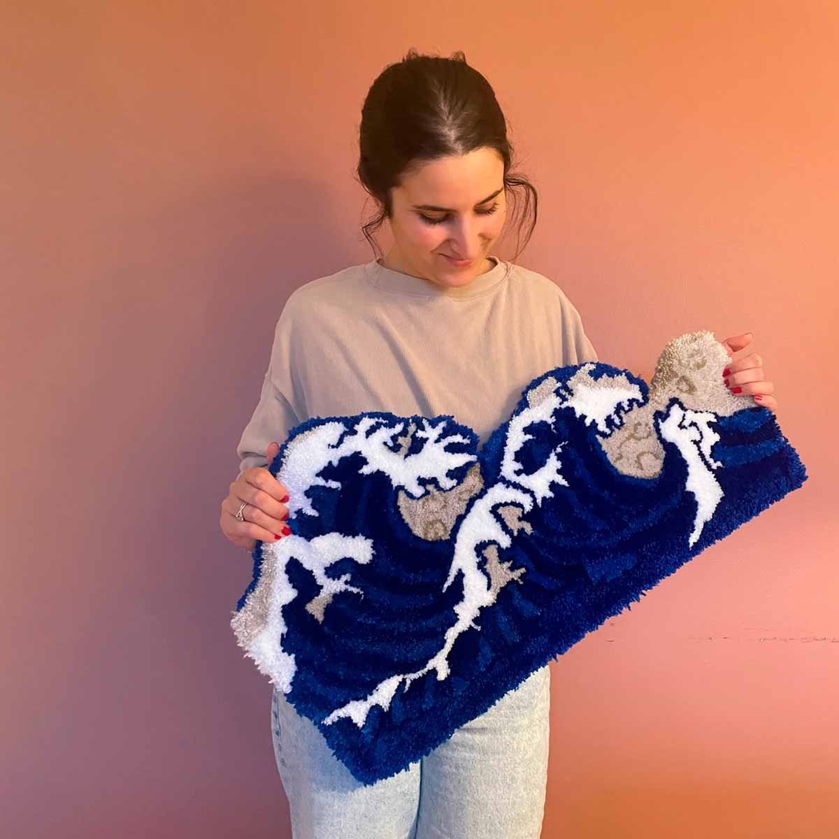 Maria er 30 år gammel og bor i Valby med sin mand, hendes to piger og en alt for garn-glad kat. I hverdagene arbejder hun som psykolog, men hjemme i stuen, foran sit lærred og med tuftepistolen i hånden, der finder hun roen.